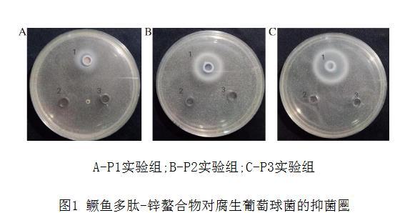 圖1鱖魚多肽-鋅螯合物對腐生葡萄球菌的抑菌圈