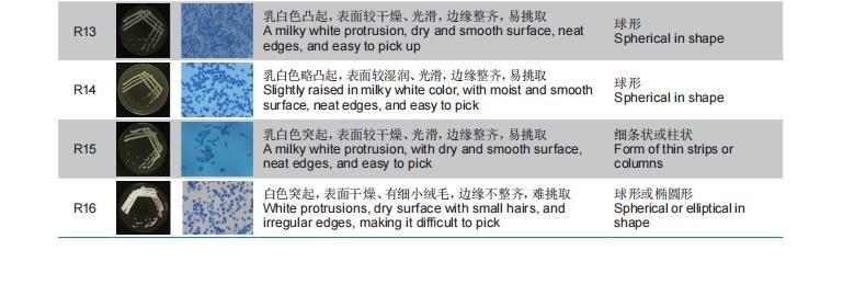 參照《真菌鑒定手冊》和《酵母菌的特征與鑒定手冊》,對分離純化出的菌株進行形態(tài)學、生理生化鑒定。酵母菌菌落多數(shù)呈乳白色,極少數(shù)為紅色,個別為黑色。酵母菌的菌落表面大多數(shù)光滑、濕潤、黏稠,容易被挑起;小部分干燥、覆蓋有細小絨毛,難以挑取。酵母菌的菌體形態(tài)各樣,包括球狀、卵圓形、橢球形、柱狀、香腸狀等。通過對酵母菌菌落特征觀察和染色鏡檢,確定出16株具有典型酵母特征的菌株,其菌落、菌體形態(tài)和酵母菌形態(tài)學分析結(jié)果見表2。