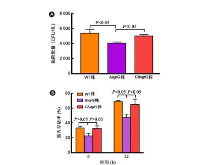 5.vgrG基因缺失后細菌抵抗巨噬細胞殺傷變化: