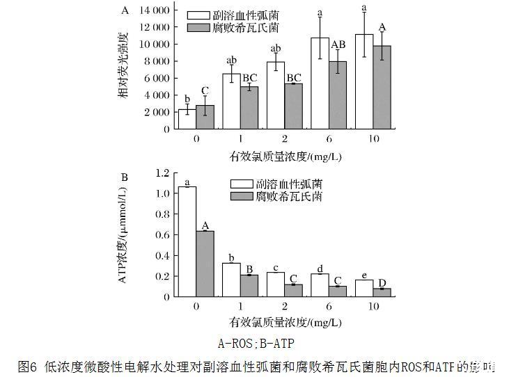 圖6 低濃度微酸性電解水處理對(duì)副溶血性弧菌和腐敗希瓦氏菌胞內(nèi)活性氧和ATP的影響