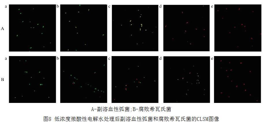 圖8 低濃度微酸性電解水處理后副溶血性弧菌和腐敗希瓦氏菌的CLSM圖像