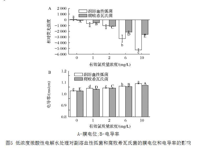 2.5 低濃度微酸性電解水處理對(duì)細(xì)菌膜電位和電導(dǎo)率的影響