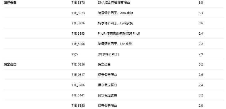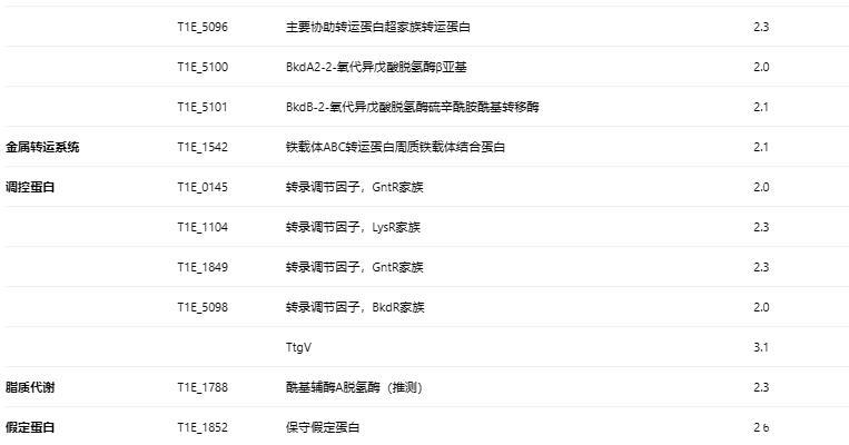 我們在T1E-18(ttgABC缺陷菌株)中進行了相同實驗:T1E-18菌株中的外排泵ttgGHI上調(diào)2.6-3.7倍(表5);且T1E-18中一些在親本菌株中未被誘導(dǎo)的基因也發(fā)生了誘導(dǎo)表達,特別是參與支鏈氨基酸代謝的基因(T1E_3322至T1E_3325、T1E_5100和T1E_5101)以及其他與氨基酸代謝相關(guān)的基因。這些結(jié)果表明,TtgABC的缺陷和TtgGHI的誘導(dǎo)會影響惡臭假單胞菌對吲哚的響應(yīng)。