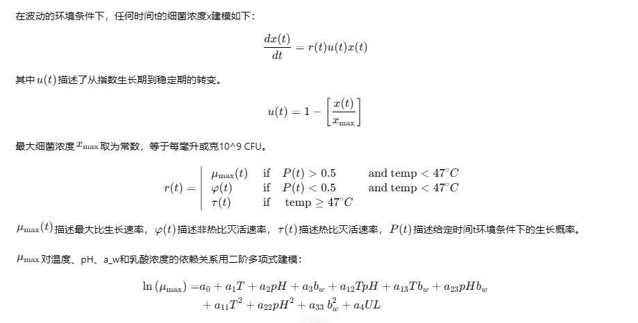 生成了一個(gè)新的包含96條非熱滅活曲線的數(shù)據(jù)集,其中a_w是抑制因子,在所有可能的幾種溫度(12、16、21和25°C)、pH值(4、5和6)、a_w值(0.90和0.94)和乳酸濃度(5,000、10,000、20,000和45,000 ppm)組合下進(jìn)行。TSB根據(jù)實(shí)驗(yàn)設(shè)計(jì)調(diào)節(jié)并在接種約10^8 CFU/ml的大腸桿菌O103:H25或大腸桿菌O157:H7前保持在目標(biāo)溫度。在適當(dāng)?shù)臅r(shí)間間隔,樣品鋪板于胰蛋白酶大豆瓊脂(TSA;Oxoid);平板在37°C培養(yǎng)48小時(shí)。選擇延長的培養(yǎng)時(shí)間而不是傳統(tǒng)的24小時(shí),是因?yàn)?7°C可能不是應(yīng)激細(xì)菌恢復(fù)和后續(xù)菌落形成的最適溫度。盡管有此預(yù)防措施,絕對(duì)菌落計(jì)數(shù)可能受到影響。然而,假設(shè)恢復(fù)環(huán)境對(duì)滅活過程所有采樣時(shí)間的絕對(duì)計(jì)數(shù)具有相同影響,因此種群滅活速率的估計(jì)不應(yīng)受恢復(fù)條件的顯著影響。但這未經(jīng)實(shí)驗(yàn)證明,可能是細(xì)菌滅活復(fù)雜性和缺乏線性的原因之一。