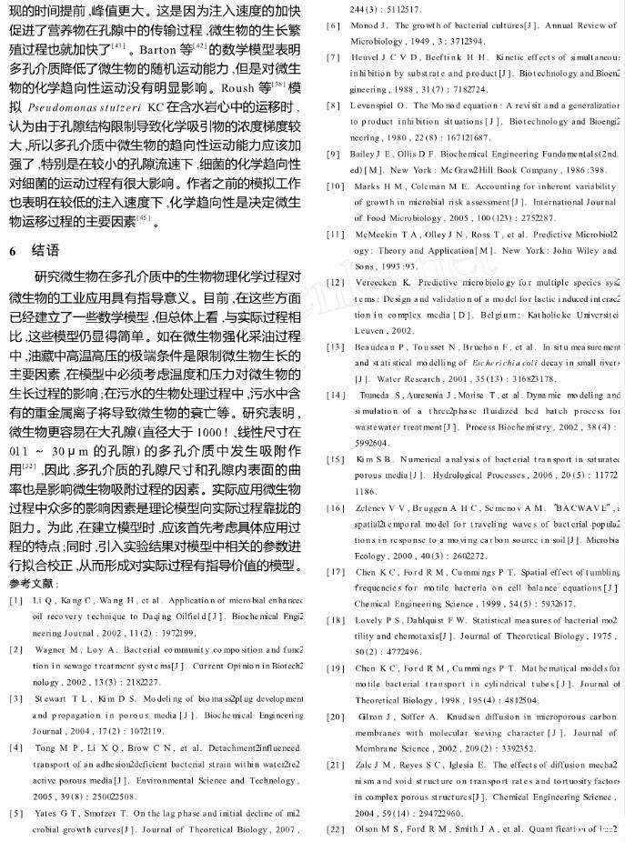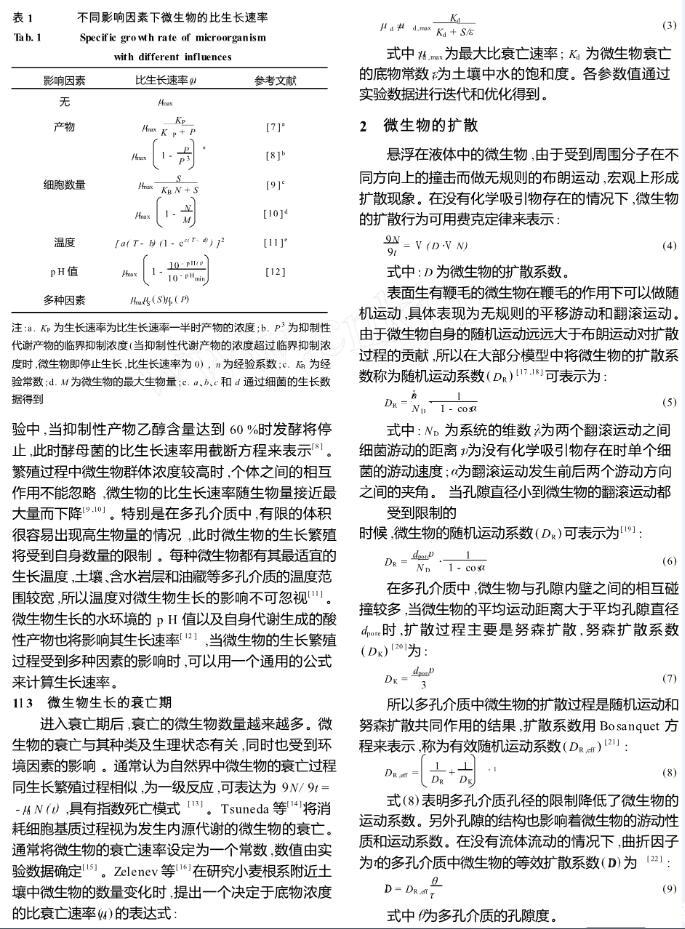 多孔介質(zhì)中微生物生長行為和傳輸過程的數(shù)學模型研究進展
