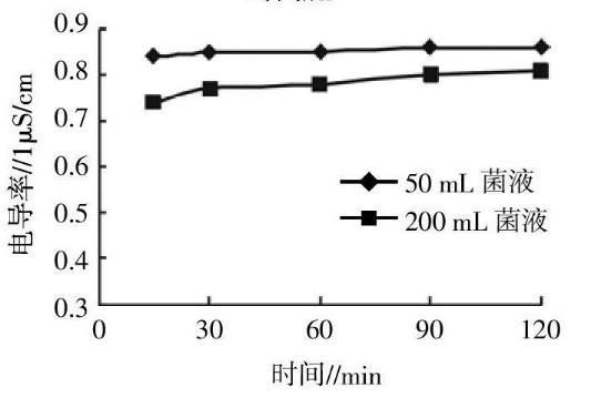 細(xì)菌在生長繁殖過程中,可通過測定細(xì)菌的生長量,來了解細(xì)菌的各種生理生化狀態(tài)。目前,細(xì)菌生長量的測定主要有4類方法:細(xì)胞數(shù)目的測量(直接顯微計數(shù)法、平板活菌技術(shù)、載片培養(yǎng)技術(shù)、微孔過濾法、庫爾特計數(shù)器、流動細(xì)胞光度法、表熒光濾過技術(shù)、熒光抗體技術(shù)、微型ELISA、電子顯微鏡);細(xì)胞量的測量(干重法、比濁法、離心壓縮細(xì)胞體積法);細(xì)菌濃度的間接測量(通過測定核酸、蛋白質(zhì)、多糖、脂質(zhì)、ATP等含量來估算菌濃度,或通過測量C、N、O和P等元素的含量間接計算菌濃度);生物量在線檢測(微熱量計法、熒光法、電容/電導(dǎo)/阻抗法等)[1]。其中比濁法檢測成本低、快速,而在線檢測技術(shù)準(zhǔn)確,可實(shí)時分析細(xì)菌生長過程中的生長量,因此具有較好的應(yīng)用前景。該文以早期分離篩選的泰樂菌素降解菌——無丙二酸檸檬酸桿菌(Citrobacteramalonaticus)為材料[2],比較了活菌稀釋計數(shù)法、比濁法和電導(dǎo)率法繪制該菌生長曲線的差異,為研究該菌的形態(tài)學(xué)特征、適應(yīng)性及泰樂菌素降解機(jī)理提供其生長量參數(shù)。