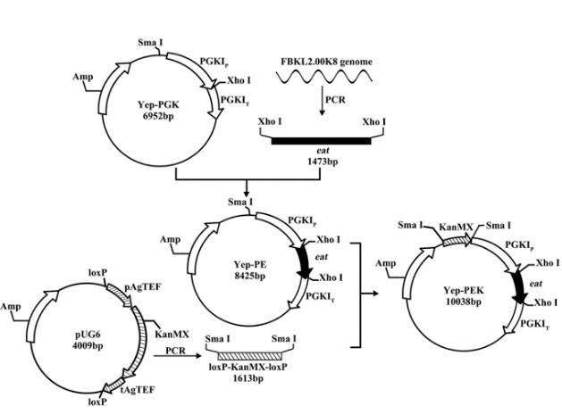 圖1、重組質粒Yep-PEK的詳細構建過程。