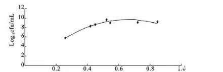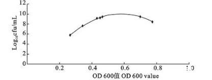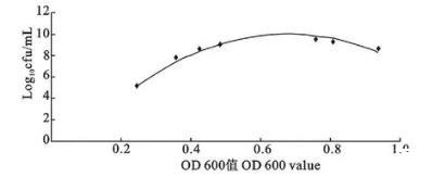 圖4 A型參考菌株OD 600 nm值與活菌數(shù)對數(shù)之間的函數(shù)關(guān)系圖