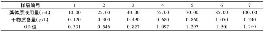 表1 OD值與螺旋藻干物質(zhì)含量的關(guān)系