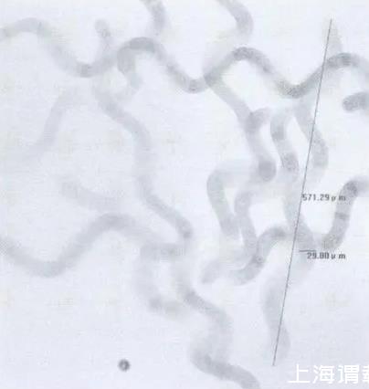 圖1是螺旋藻的顯微鏡圖。由圖可見,螺旋藻呈藍(lán)綠色,為絲狀體藻絲螺旋狀,藻絲長500-650μm,藻絲直徑約29μm,頂端鈍圓或略尖細(xì),末端細(xì)胞寬圓形。