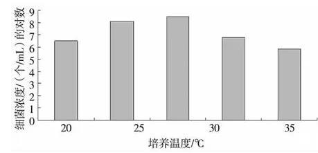 不同的培養(yǎng)溫度下,菌株XL1在pH為7.0的LB培養(yǎng)基中培養(yǎng)28h后菌體濃度的測定結果見圖5。