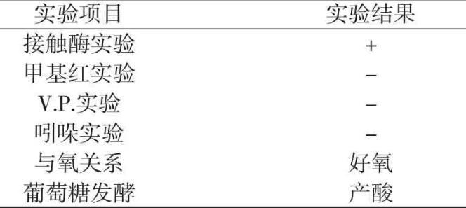 接觸酶實驗、甲基紅實驗、菌株需氧性實驗等的結果如表2所示。