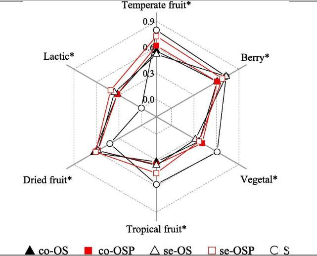 本研究旨在探討兩個關鍵因素(接種時間和配對酵母)對梅洛葡萄酒發(fā)酵性能和香氣產生的影響。對發(fā)酵活性和微生物生長進行了監(jiān)測。測定了最終葡萄酒的非揮發(fā)物、揮發(fā)物和香氣特征。此外,研究了接種時間和酵母配對兩種試驗因素及其相互作用對葡萄酒酒球菌生長和香氣產生的影響。