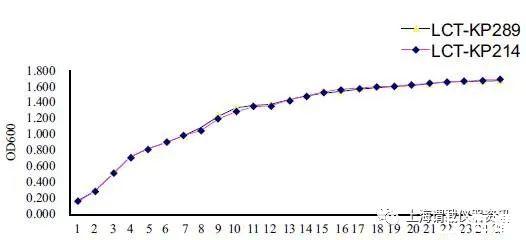 芬蘭的Bioscreen全自動生長曲線分析儀測試了兩種肺炎克雷伯菌(LCT-KP289、LCT-KP214的)在培養(yǎng)基中的的生長曲線圖,培養(yǎng)時間為25h,每隔60分鐘測試一次OD600值,培養(yǎng)過程中搖晃、生長及OD值的測試全是自動完成的,從而能夠長時間準確的測試出兩種不同類型的肺炎克雷伯菌的生長情況,獲得相應的生長曲線圖。