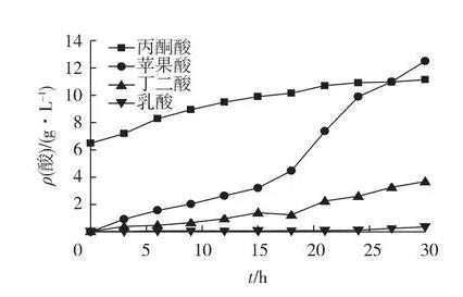 圖4重組大腸桿菌E.coli 2030在15 L發(fā)酵罐中發(fā)酵產(chǎn)酸情況