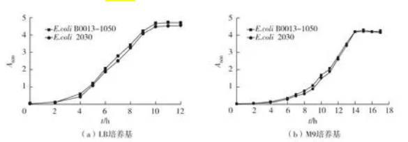 圖3 E.coli B0013-1050及其突變株E.coli 2030的生長特性比較