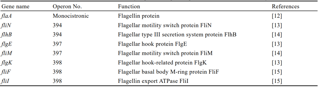 表3本研究選擇的8個(gè)單增李斯特菌鞭毛基因的信息