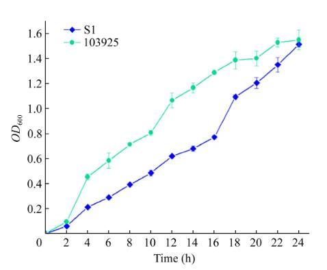 【結(jié)果】利用玉米小斑病菌(Bipolaris maydis)作為指示菌,平板篩選得到拮抗細菌S1,并驗證該菌對盆栽種植黃瓜植株的促生作用以及對白粉病的防治效果。16S rRNA基因序列分析結(jié)果表明該菌株與Bacillus subtilis KZH-E3具有100%的相似性。通過全基因組測序,借助生物信息學(xué)分析工具,利用系統(tǒng)發(fā)育進化關(guān)系,在全基因組水平上菌株S1被鑒定為枯草芽孢桿菌,自主命名為Bacillus subtilis S1。通過溫室盆栽防效試驗,證明菌株S1對黃瓜白粉病具有顯著的防效。