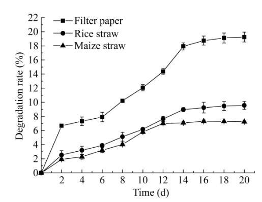 圖4菌株BYAU-LC3對不同纖維素材料的降解情況