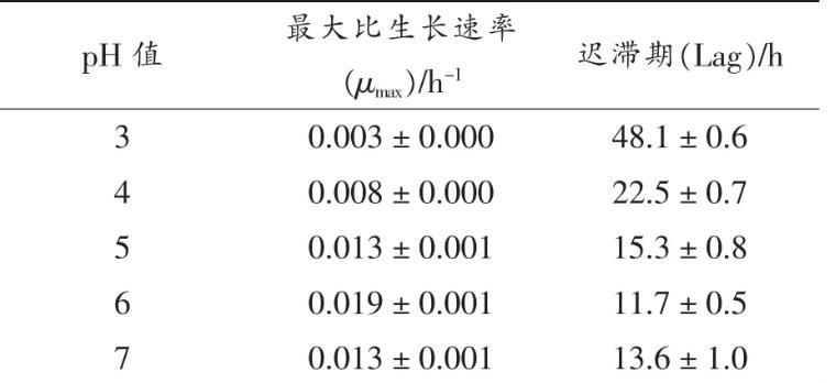 表2不同pH值下短乳桿菌生長動力學(xué)參數(shù)