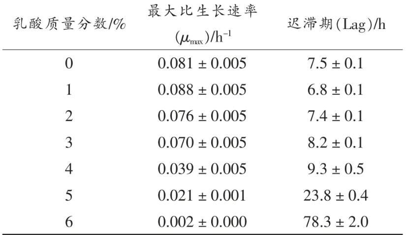 表5不同乳酸條件下對釀酒酵母生長動力學(xué)的影響