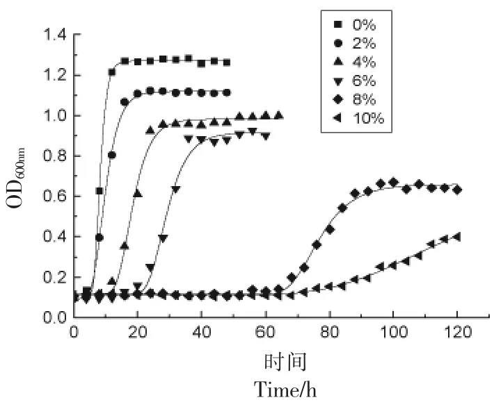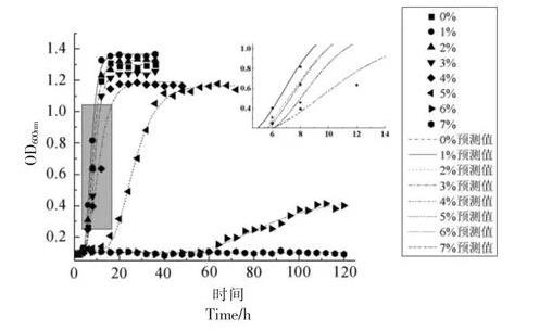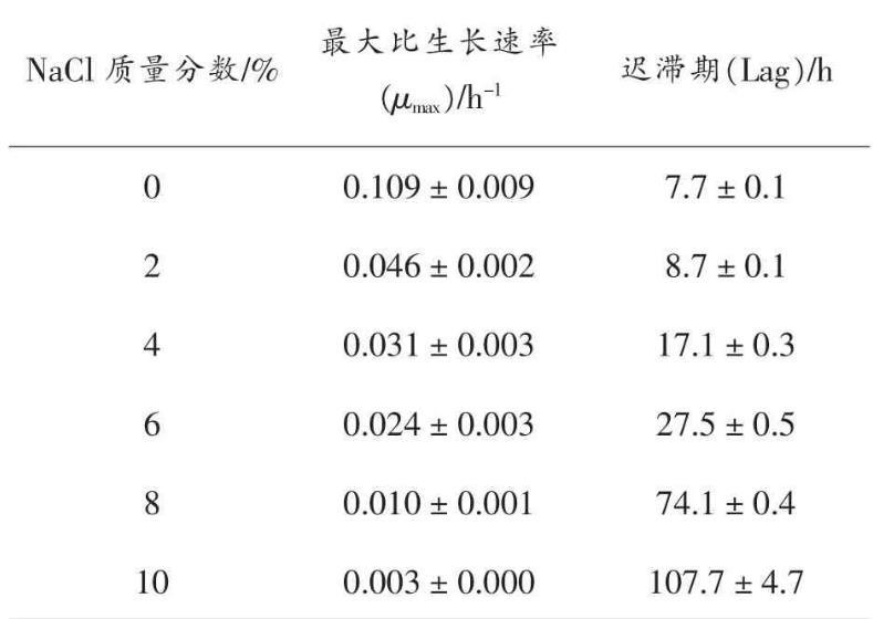 表1不同NaCl條件下短乳桿菌生長動力學(xué)參數(shù)