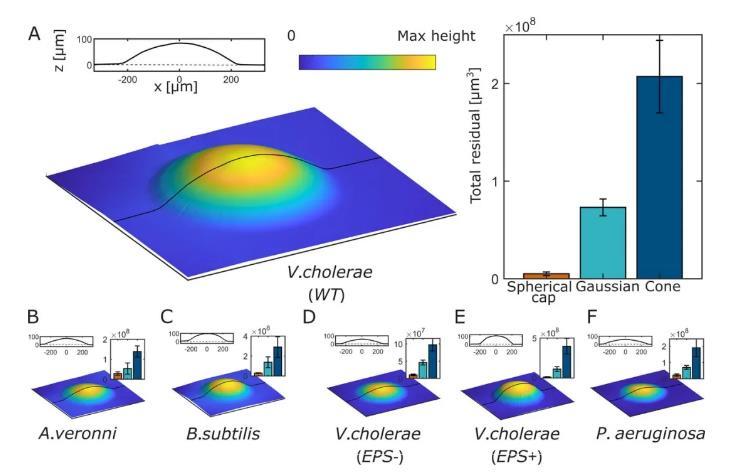細(xì)菌通常附著在物體表面,形成密集的群落,稱為生物膜。生物膜生長過程中會(huì)向整個(gè)表面擴(kuò)張,從而增加表面積和獲得養(yǎng)分的機(jī)會(huì)。因此,生物膜的整體生長速度直接取決于其“區(qū)域擴(kuò)張range expansion”速度。限制區(qū)域擴(kuò)張速度的一個(gè)因素是垂直生長;在生物膜邊緣,水平生長和垂直生長之間存在直接的權(quán)衡--生物膜向上生長得越多,向外生長得就越少。因此,水平生長和垂直生長的平衡會(huì)影響區(qū)域擴(kuò)張速度,更重要的是會(huì)影響生物膜的整體生長速度。然而,人們對(duì)水平生長和垂直生長之間的生物物理聯(lián)系仍然知之甚少,這在很大程度上是由于從小長度尺度到宏觀尺寸的生物膜形狀難以得到足夠的空間和時(shí)間分辨率。