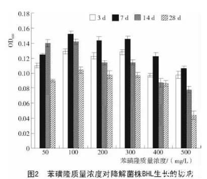 2.2苯磺隆質(zhì)量濃度對降解菌株BHL生長的影響