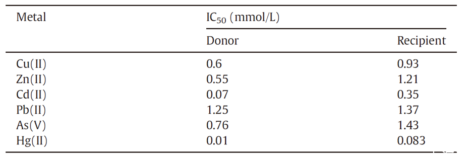 圖1、合成廢水下供體和受體的IC 50值