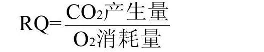 呼吸熵(respiratory quotients,RQ)的引入把測(cè)定細(xì)菌呼吸率的氧單位轉(zhuǎn)變?yōu)橐蕴紴閱挝?,定義為: