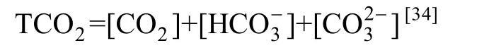 Toolan[32]指出庫倫呼吸測(cè)量法是基于碳的呼吸率,因而能與初級(jí)生產(chǎn)無機(jī)碳固定率作對(duì)比,并且由于其不需要運(yùn)用到呼吸熵,所以要比以測(cè)氧氣濃度變化為基礎(chǔ)的方法優(yōu)越。水體中由于CO2與23CO-相平衡,為了測(cè)量通過呼吸產(chǎn)生的CO2,故應(yīng)測(cè)量總?cè)芙鉄o機(jī)碳(TCO2):