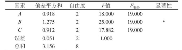 由表2方差分析可知,B因素的F值大于F臨界,這說明pH值對(duì)雌馬酚產(chǎn)量的影響顯著(P<0.05)。A因素和C因素的F值均小于F臨界,這說明葡萄糖質(zhì)量濃度和NaCl質(zhì)量濃度對(duì)雌馬酚產(chǎn)量的影響不顯著。