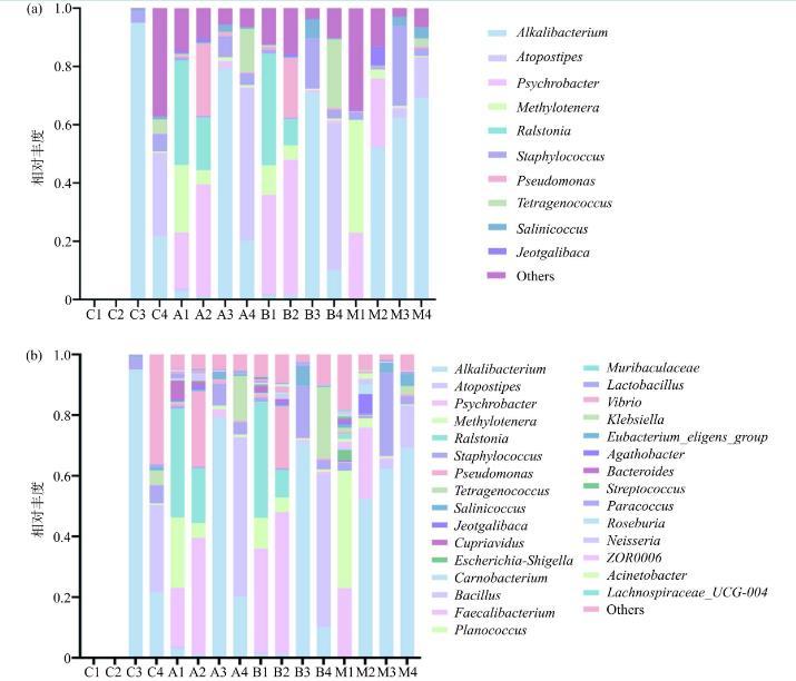 圖2屬水平相對豐度Top10(a)和Top30(b)