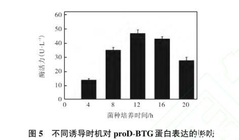 圖5不同誘導(dǎo)時機對proD-BTG蛋白表達的影響