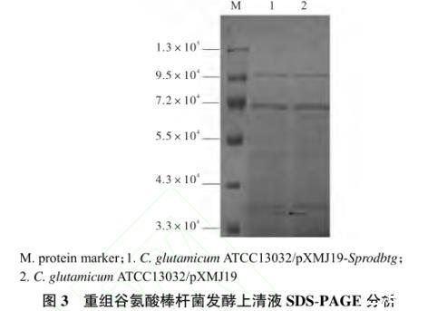 圖3重組谷氨酸棒桿菌發(fā)酵上清液SDS-PAGE分析