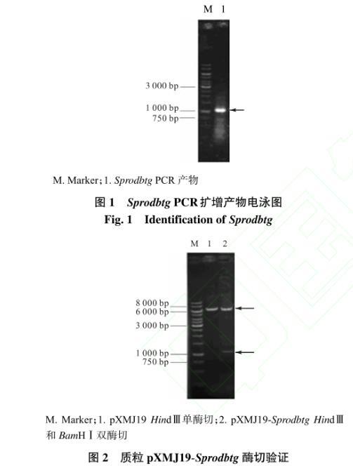 2.2重組質(zhì)粒pXMJ19-Sprodbtg的構(gòu)建