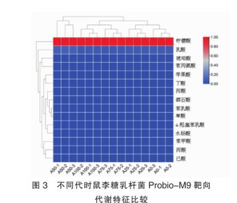 圖3不同代時(shí)鼠李糖乳桿菌Probio-M9靶向代謝特征比較