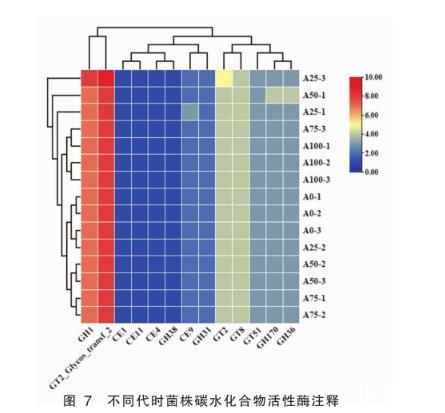 圖7不同代時菌株碳水化合物活性酶注釋