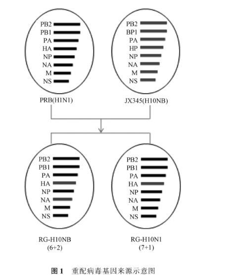 利用反向遺傳技術(shù),構(gòu)建了包含JX346基因和A/PR/8/34病毒基因的2株重配病毒,一株重配病毒的表面基因HA和NA來自JX346,內(nèi)部基因來自PR8,命名為RG-H10N8;另外一株重配病毒的表面基因HA來自JX346,NA和內(nèi)部基因來自PR8,命名為RG-H10N1。