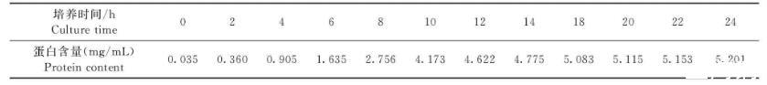 在1.6中測(cè)定OD600 nm值時(shí),同時(shí)吸取適量菌液,12 000 r/min離心10 min,用0.22μm細(xì)菌濾器過濾,制得外毒素粗提取液。分別測(cè)定OD280 nm和OD260 nm值,根據(jù)蛋白濃度經(jīng)驗(yàn)公式計(jì)算不同培養(yǎng)時(shí)間點(diǎn)培養(yǎng)液的外毒素蛋白質(zhì)含量(ρ)。