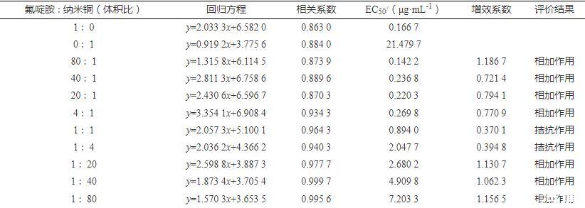 表5氟啶胺與納米銅復(fù)配對煙草青枯病菌的聯(lián)合毒力