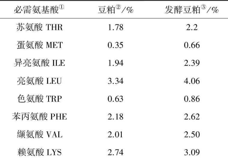 表1 A-1發(fā)酵前后豆粕必需氨基酸含量變化