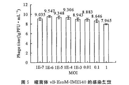 圖5噬菌體vB-EcoM-IME540的感染復(fù)數(shù)