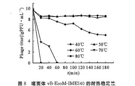 圖8噬菌體vB-EcoM-IME540的耐熱穩(wěn)定性