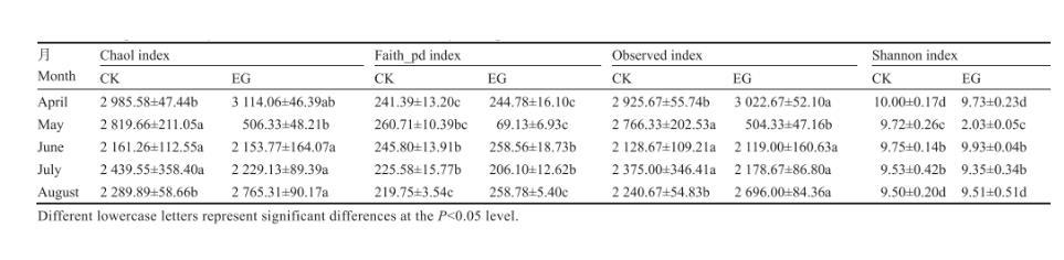 表1不同月份試驗田土壤細菌群落α多樣性指數(shù)