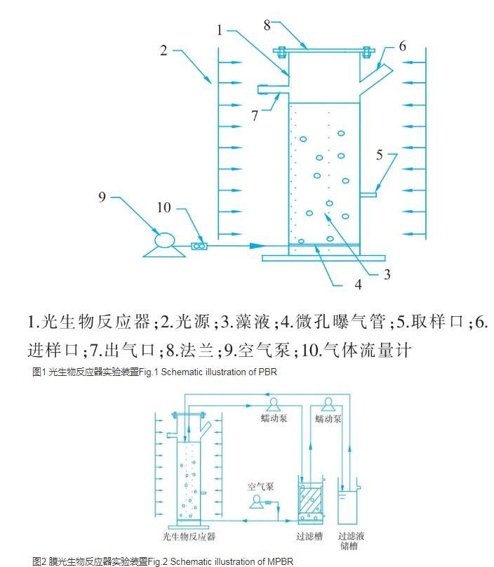 目前微藻培養(yǎng)系統(tǒng)的兩種主要類(lèi)型是開(kāi)放式跑道池和封閉式光生物反應(yīng)器(photobioreactor,PBR)。傳統(tǒng)的PBR沒(méi)有固液分離功能,反應(yīng)器中的水力停留時(shí)間(hydraulic retention time,HRT)和微藻停留時(shí)間(microalgae retention time,MRT)是相同的,獲得的生物質(zhì)濃度較低,給后續(xù)采收過(guò)程帶來(lái)很大的難度。為解決這個(gè)問(wèn)題,可在膜光生物反應(yīng)器(membrane photobioreactor,MPBR)模式下培養(yǎng)微藻。MPBR是微藻培養(yǎng)和采收的一種全新的方法,它將光生物反應(yīng)器同過(guò)濾器相耦合,進(jìn)而將HRT和MRT分開(kāi),實(shí)現(xiàn)固液分離。且膜過(guò)濾操作簡(jiǎn)單,在微藻培養(yǎng)和采收方面的應(yīng)用越來(lái)越多,Su等人在MPBR中利用電廠污水培養(yǎng)柵藻;Bilad等人利用浸沒(méi)式微濾膜采收微藻生物質(zhì);同時(shí)MPBR中過(guò)濾液可以再循環(huán)用作微藻培養(yǎng)液。此外通過(guò)膜的過(guò)濾作用,提高藻產(chǎn)品生物量濃度,在采收過(guò)程中無(wú)需使用助凝劑和絮凝劑等化學(xué)藥品。