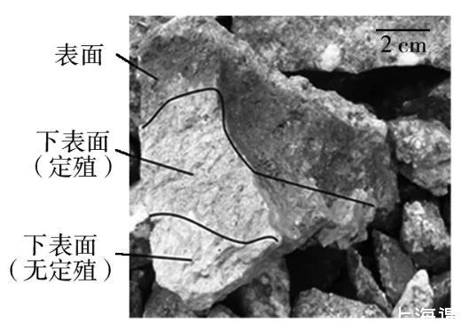 定殖在巖石的底部或巖土界面的微生物及微生物群落稱為石下生微生物。這類微生物群落在沙漠(戈壁)中比較常見。巖石的底部為微生物提供了一個可以保持濕度和避免高光強輻照保護區(qū),使得石下生微生物免受極端干旱和光化學氧化脅迫的傷害[26-27]。從側面觀察,可以清晰看到界限分明的“環(huán)”在巖石的底部或薄的巖石周圍(圖2)。