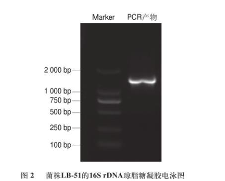 圖2菌株LB-51的16S rDNA瓊脂糖凝膠電泳圖