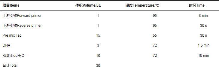 將待測(cè)菌株培養(yǎng)24 h后提取該細(xì)菌基因組DNA。以細(xì)菌基因組DNA作為目的基因進(jìn)行PCR擴(kuò)增。PCR反應(yīng)體系見表1。PCR產(chǎn)物經(jīng)1.2%瓊脂糖凝膠電泳檢測(cè),菌株的保守序列約為1 500 bp,將片段長(zhǎng)度正確的PCR產(chǎn)物送至天一輝遠(yuǎn)生物科技有限公司進(jìn)行測(cè)序。從GenBank中獲取的基因序列在NCBI網(wǎng)站進(jìn)行BLAST比對(duì),通過MEGA進(jìn)行比對(duì)建樹。