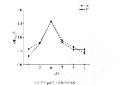 圖2不同pH值下菌株的吸光度